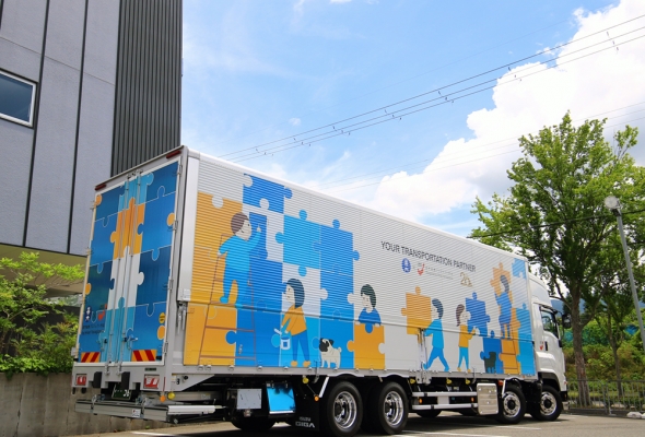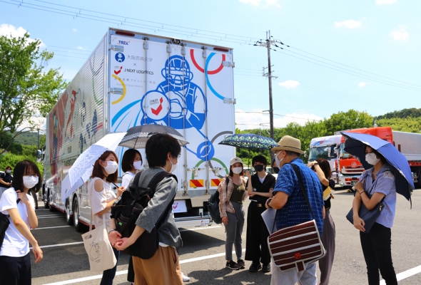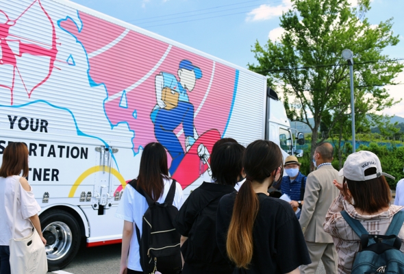 弊社ジェイネクストロジスティクスと大阪芸術大学は産学連携プロジェクト第五弾2020年度として、弊社トラックへのラッピングデザインを大阪芸術大学の学生の方々にご依頼をさせていただきました。新型コロナウイルスの影響により世界中で大変困難な状況の中、同じ地域に属する大学と企業との取り組みから、少しでも明るく前向きなメッセージを本企画によりお届けしたいと考えております。応援をよろしくお願いいたします。