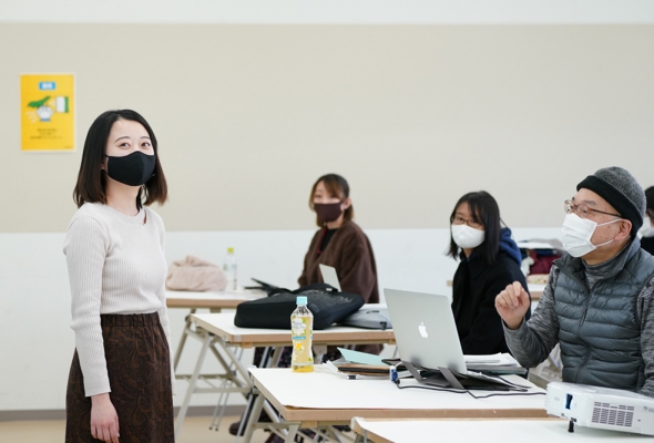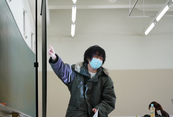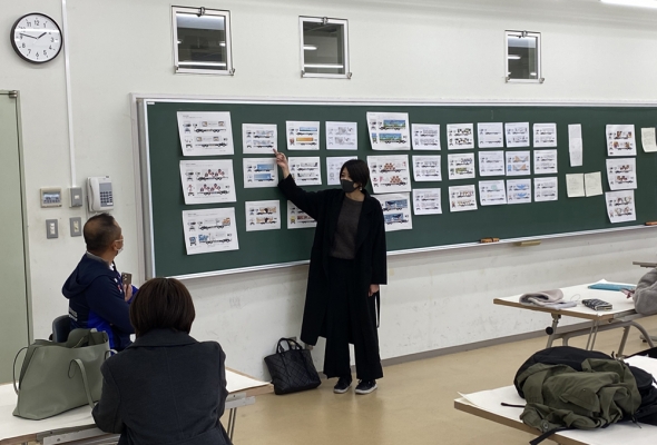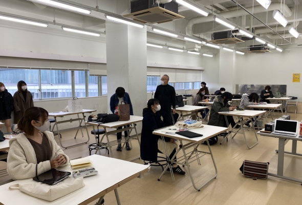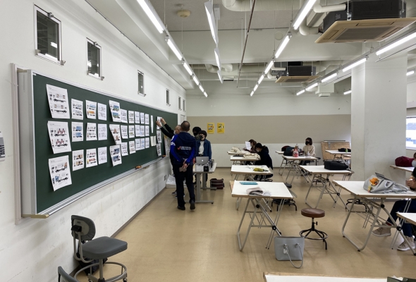 ほとんどの授業がリモートで行っている大阪芸術大学ですが、今回も前回同様にコロナ対策仕様でソーシャルディスタンスを保ちつつ生徒さん達の二回目のラフ案を発表&プレゼンテーションを行いました。