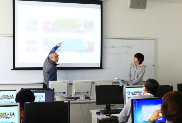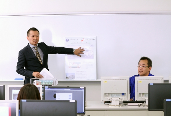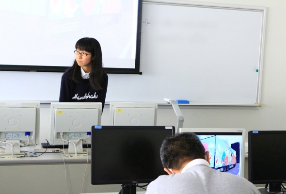 今回は4月14日(金)15:30よりデザイン学科の学生さんたちを前に、当該プロジェクトの説明に伺いました。