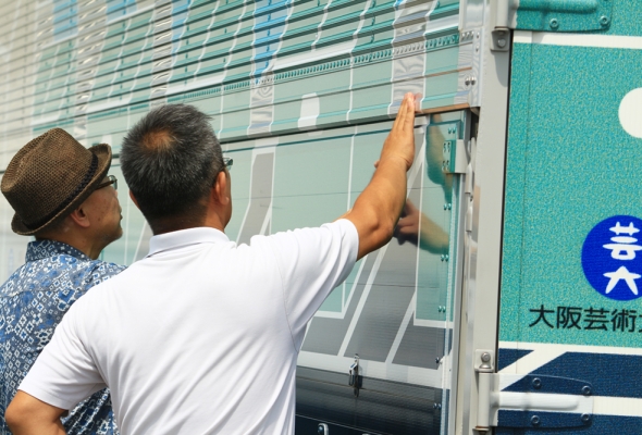 7月7日お昼過ぎの暑い中、大阪芸術大学の学生さんと先生の一団が弊社トラックの現場の見学と確認に来られました。