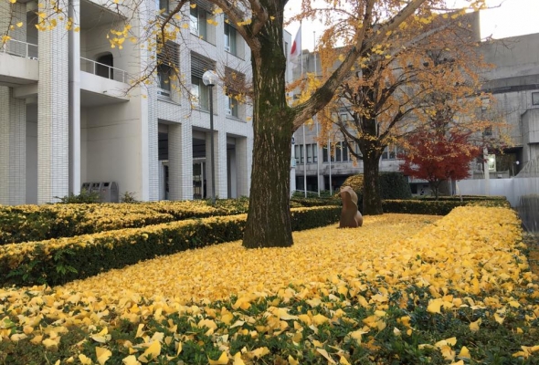 12月1日、大阪芸術大学のデザイン学科学生さんのデザインラフ案の第一弾を拝見しにイチョウの葉が舞う大阪芸術大学に伺いました