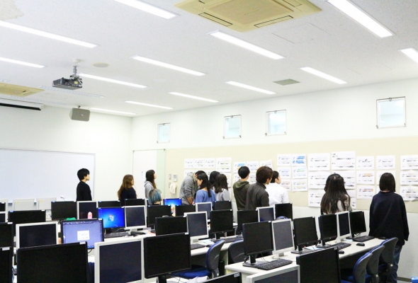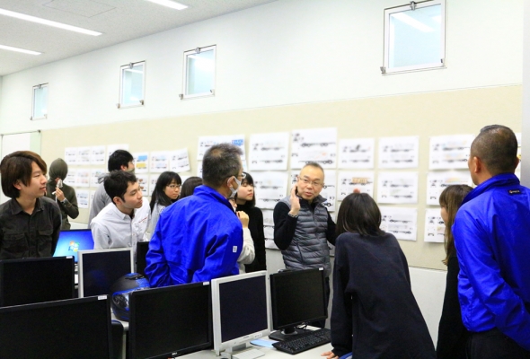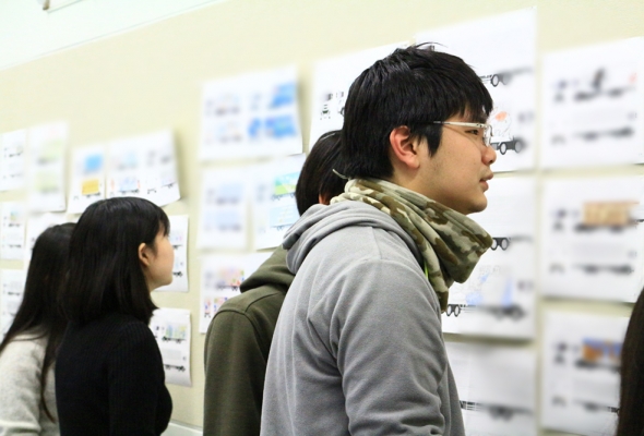 先日の大阪芸術大学での学生さん達の最終プレゼンテーションをじっくりと伺った弊社スタッフが、それぞれの作品一枚一枚のコンセプトや学生さん達の“想い”を充分に伝える場となりました。会議室で弊社社長と役員を含めスタッフとがしっかりと耳を傾け、時には意見を交換し合いながら、作品の評価を行いました。