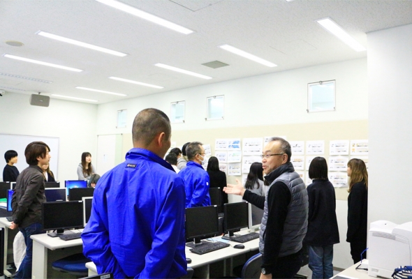 今回は、たくさんの学生さんが複数のラフ案を提出していただき、弊社社長と各案について意見交換を行いました。