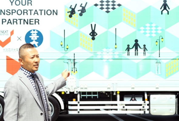 弊社ジェイネクストロジスティクスと大阪芸術大学は産学連携プロジェクト第三弾2018年度として、弊社トラックへのラッピングデザインを大阪芸術大学の学生の方々にご依頼をさせていただきました。いつも地域の皆様に支えていただいている弊社ですが、この南河内郡を、弊社を、もちろん大阪芸術大学さんをより知っていただくために、再びこの産学連携プロジェクトを始動いたしました。