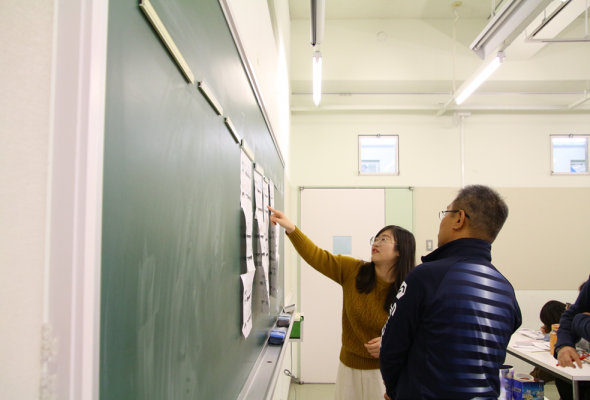 今回は、女性の学生さんだけで、とても華やかでカラフルな案がホワイトボードを彩りました。