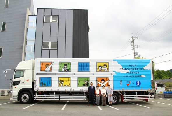 今期で三回目となりましたこの産学連携トラックプロジェクトですが、この機会を与えてくださり多大なるご協力を下さいました大阪芸術大学の各関係者の方々、たくさんの素晴らしいデザインを提案してくださったデザイン学科の生徒の皆様、トラックに印刷を行ってくださった淡路共正陸運株式会社様、本当にありがとうございました。